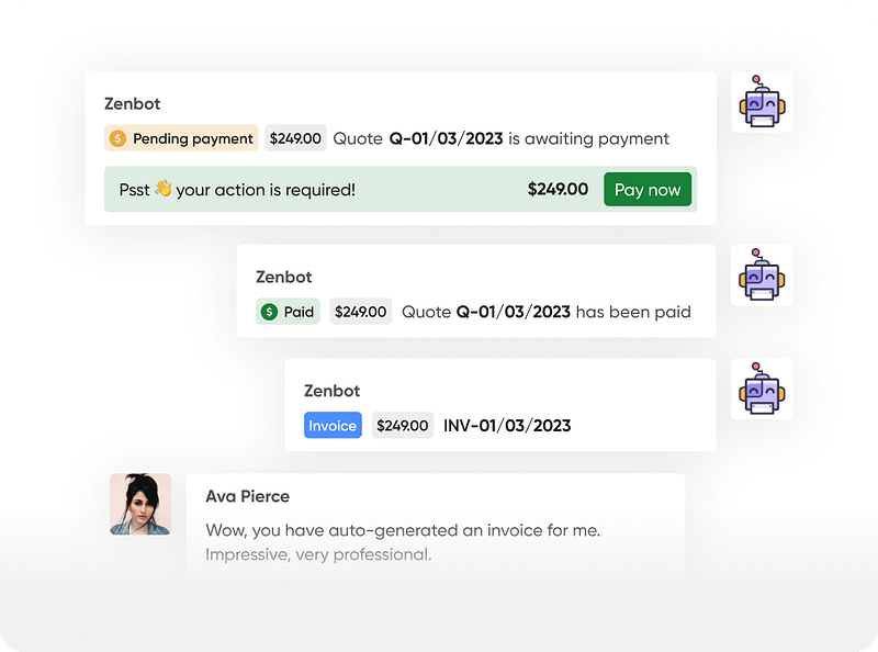 Zendo allows you to sell productized, subscription and custom services. Collaborate and collect payments. Create quotes and invoices. Eliminate multiple tools and enjoy the simplicity.