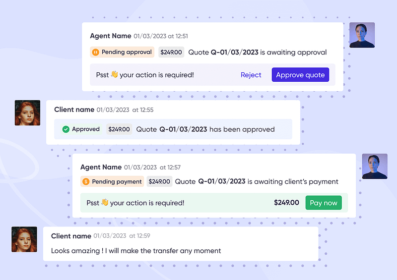 You can automate the process — Zendo will autogenerate Payment Request and send it to the customer upon quote creation or approval.